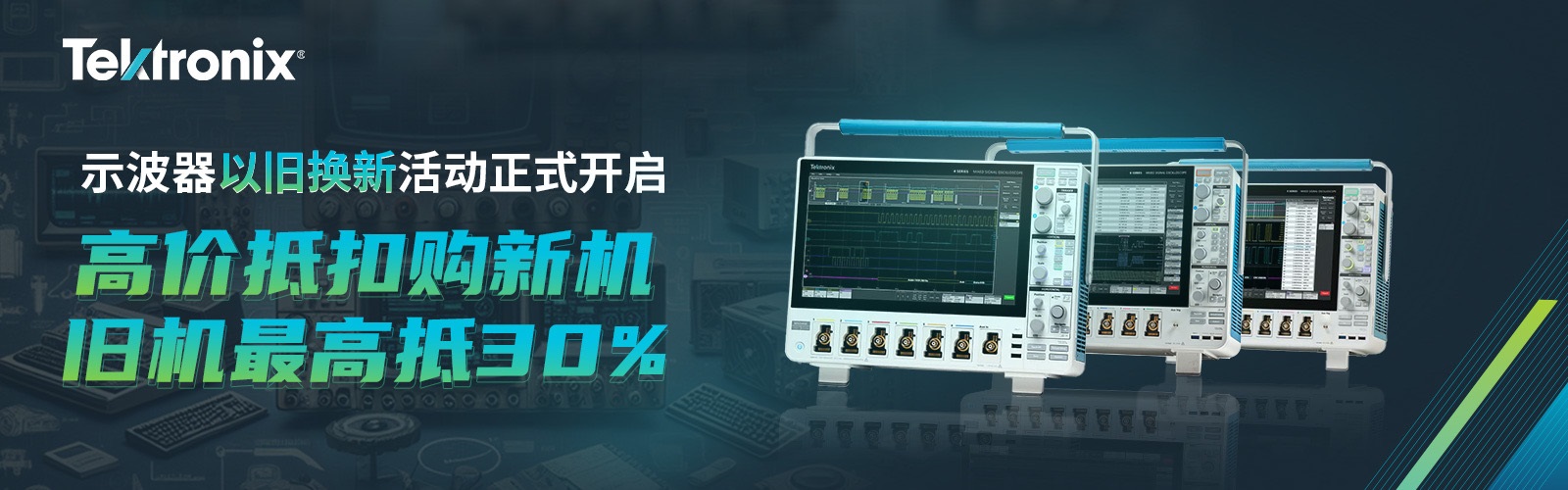 泰克计划以以旧换新形式向客户提供高达30%的折扣,任何符合条件的老旧示波器设备可用于换购新的4系列B、5系列B或6系列B示波器这一活动。