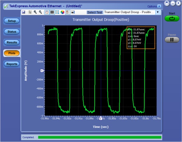 进行每项测试都要求使用器件供应商提供的专用软件,针对特定操作模式来配置发射机。一旦正确配置了发射机,同时使用了正确的测试夹具和探头,那么可以配置汽车以太网软件设置,与关心的特定测试相匹配。在选择测试后,软件会指引用户执行所有必要的仪器设置。对失真和回波损耗测试,这可能会包括对信号发生器进行必要的设置,以进行这些测试。