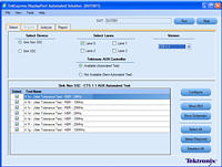 Setup and test execution is simple with the TekExpress software. The signal generator and auxiliary controller are all controlled through the TekExpress automation framework. The TekExpress software provides a Graphical User Interface (GUI) and provides an intuitive workflow through setup and testing. Upon completion of test execution, a report is generated displaying the test results.