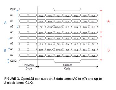 FIGURE 1. OpenLDI can support 8 data lanes (A0 to A7) and up to 2 clock lanes (CLK).