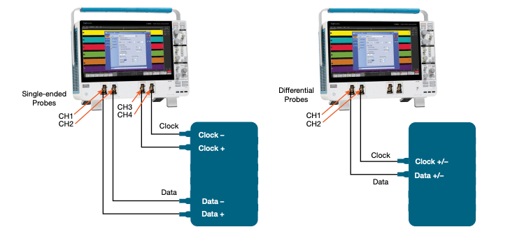 FIGURE 3. Measurements may be made using single-ended, matched SMA cables, or differential probes. Differential probes use fewer oscilloscope channels.