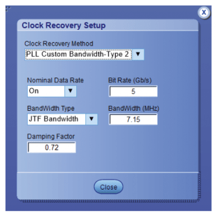 For systems with embedded clocks, the application provides fully-configurable clock and data recovery. (Figure 5) Multiple clock recovery methods are supported including constant clock, PLL custom bandwidth (Type 1/Type 2) and explicit clock. (The “explicit clock” is applicable in cases where a separate clock is available.)