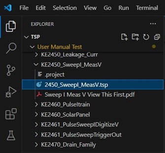 TSP Toolkit features the modern user interface (UI) of the Microsoft Visual Studio Code editor (VS Code), complete with syntax-highlighting for TSP to increase readability. VS Code also offers hundreds of additional extensions, so users developing with multiple programming languages can seamlessly integrate TSP script development into their workflows.