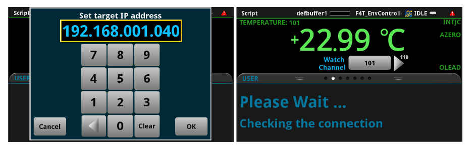 NOTE: When power is removed from the F4T Controller, the DAQ6510 will report “LAN cable disconnected”. Touch the OK button to accept – this will pass when the controller reboots.