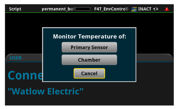 4. The script will prompt the user to select the the temperature measurement device used for checking against the programmed set point(s) and MUX scanning.