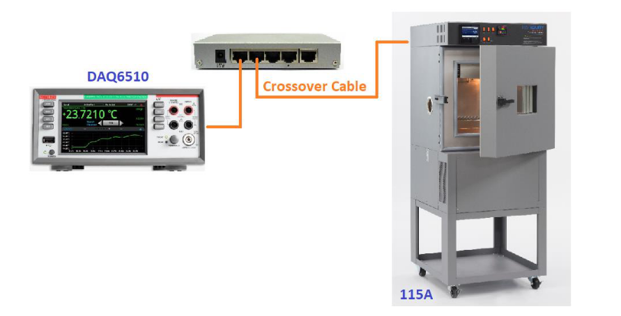 The Keithley DAQ6510 Data Acquisition and Multimeter System can monitor the environment within a test chamber (such as the TestEquity 115A), take readings, and with TSP scripting and instrument communication via TSP-Net, control the test chamber. This functionality applies the ease and intuitiveness of the DAQ6510 touch interface to a F4T thermal chamber controller, including the ability to control the chamber through easy-to-navigate GUIs. The method detailed in this document for thermal chamber control and data acquisition allows for simple and straightforward operation. Because the same unit is being used for both chamber control and data acquisition, those unfamiliar with these devices only need to learn how to operate a single instrument as opposed to an entire environmental testing setup.