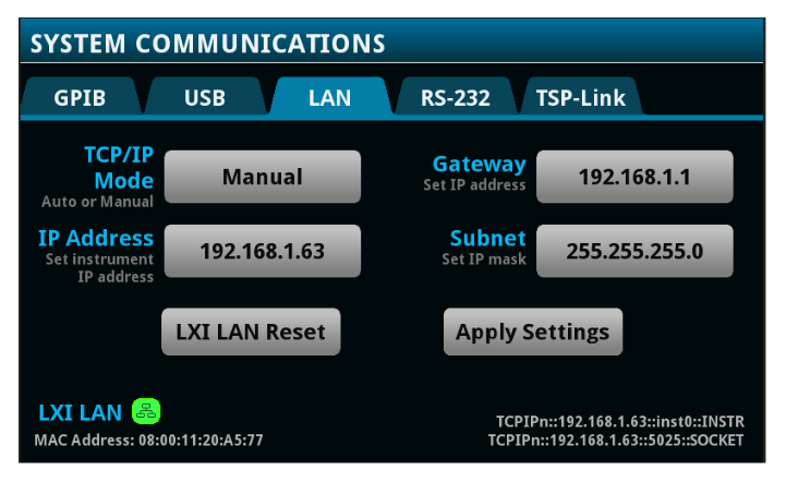 b) Configuring the DAQ6510 Local Area Network Communications Settings