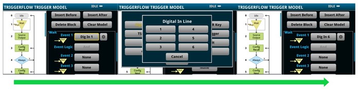 “MENU” button and navigating to Trigger->Configure. Select Block 1 (the Wait block) and change Event 1 as necessary.