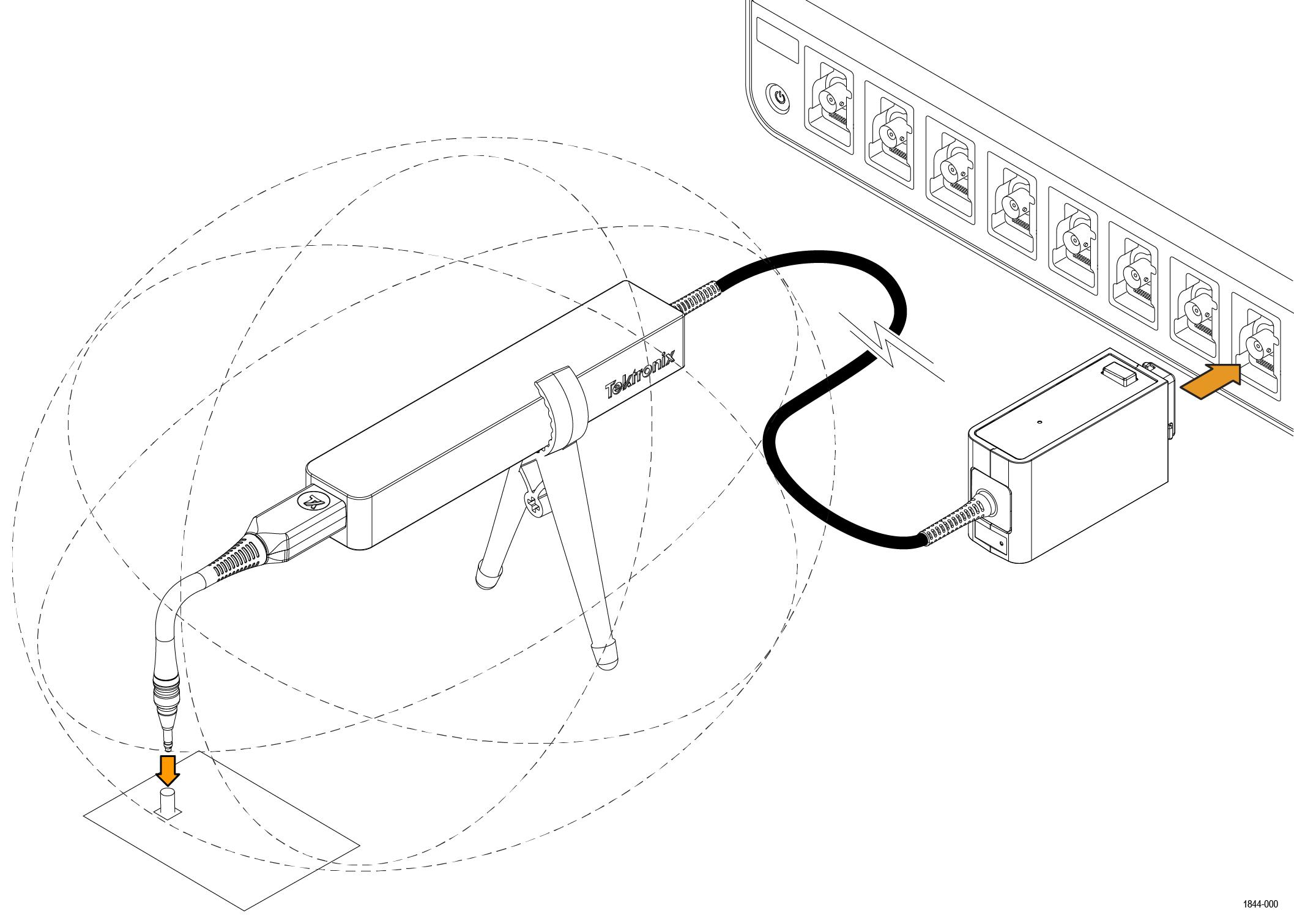 ![]() | WARNING:To avoid electric shock, keep the probe wire as far from the tip and high voltage circuits as possible. The probe wire voltage rating is less than the probe tip voltage rating. Therefore the probe wire may not provide adequate protection. |