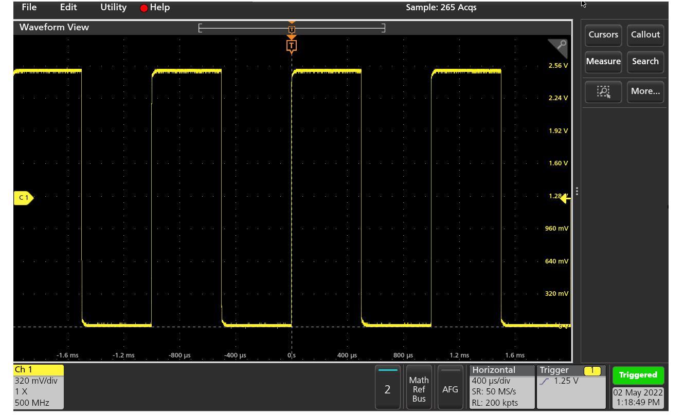 - Tap Trigger on the settings bar and verify the oscilloscope is Triggering.