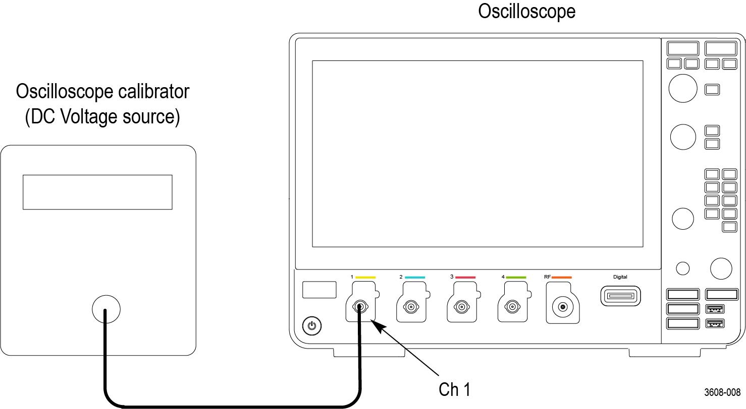 Set the calibrator to the input voltage shown in the test record (for example, –5 V for a 1 V/div setting).