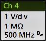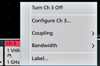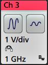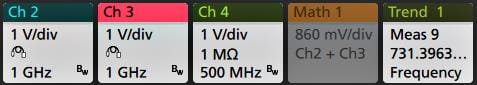 - Double-tap a math, reference, or bus badge to check or change the waveform settings.