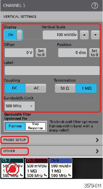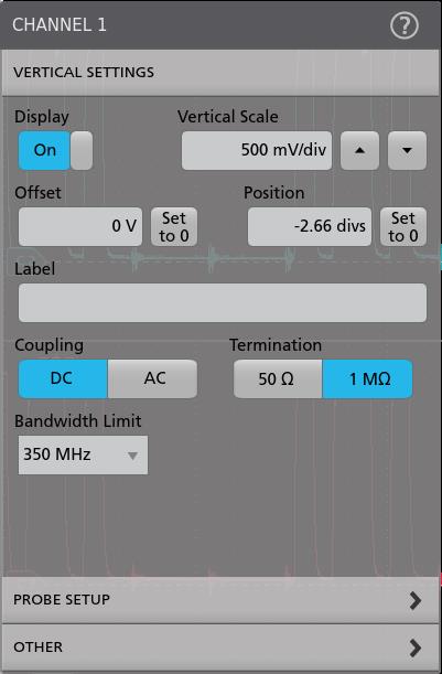 - Tap the Help icon on a configuration menu title for more information on math, reference, and bus waveform settings.
