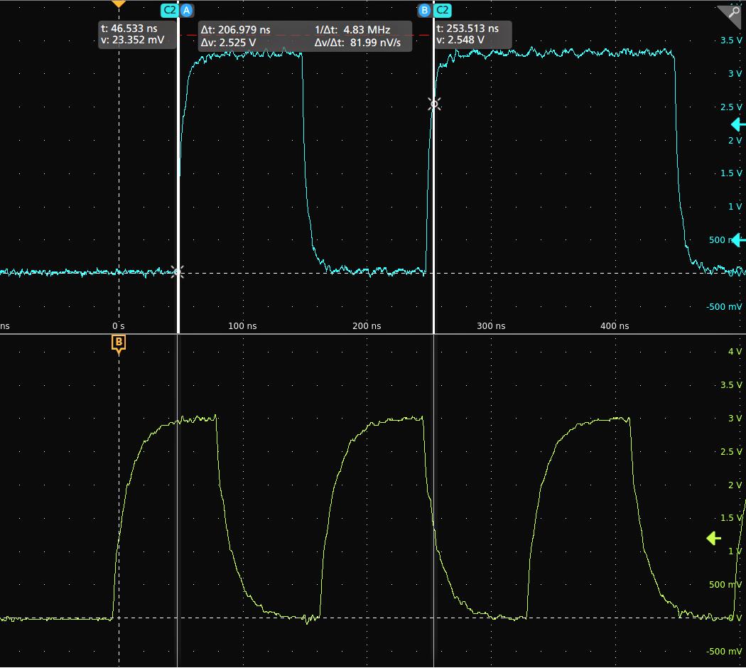 - To move the cursors to a different channel or waveform, just tap in that waveform graticule.