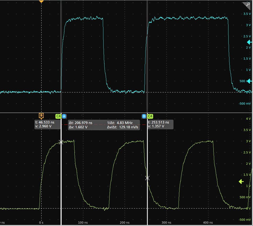 - To return the instrument to normal acquisition mode, tap the Zoom icon in the upper right corner of the Waveform View to turn off Zoom mode, and push the Run/Stop front-panel button to set it to Run mode.