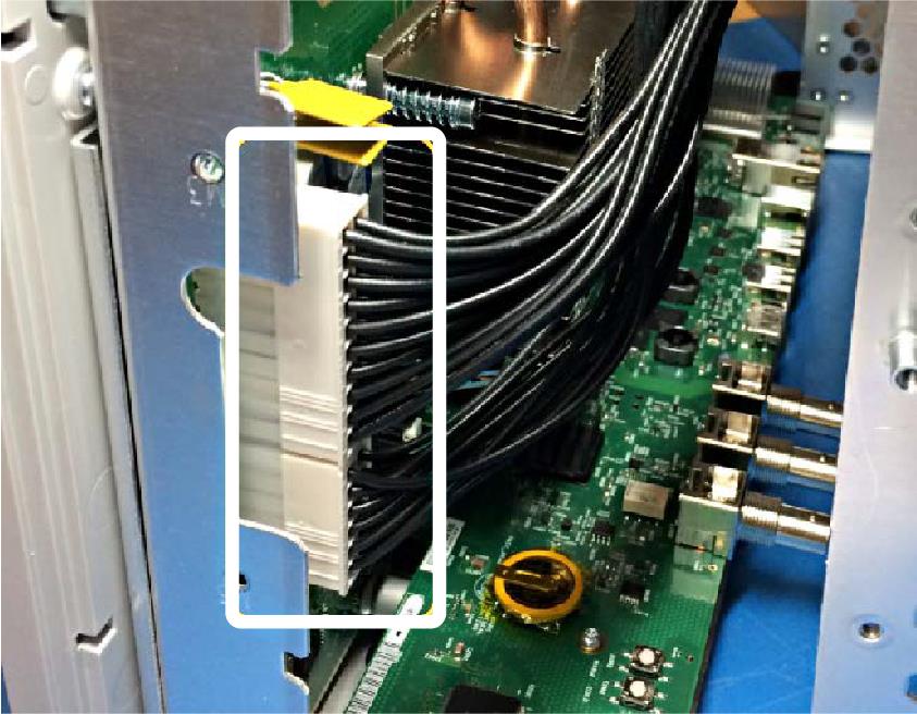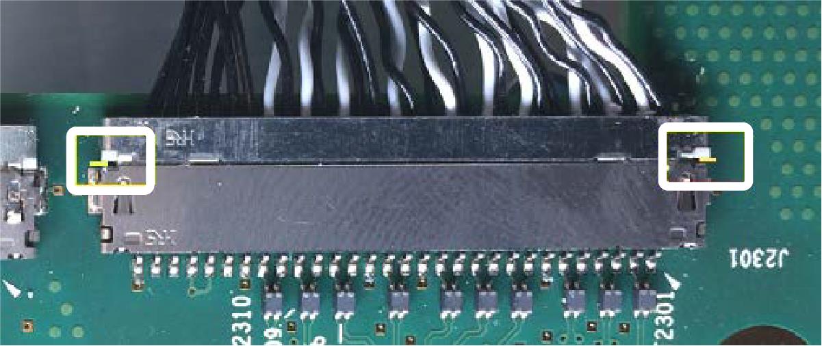- Position your fingernails so that they are between the edge of the larger-size cable connector and its board connector.