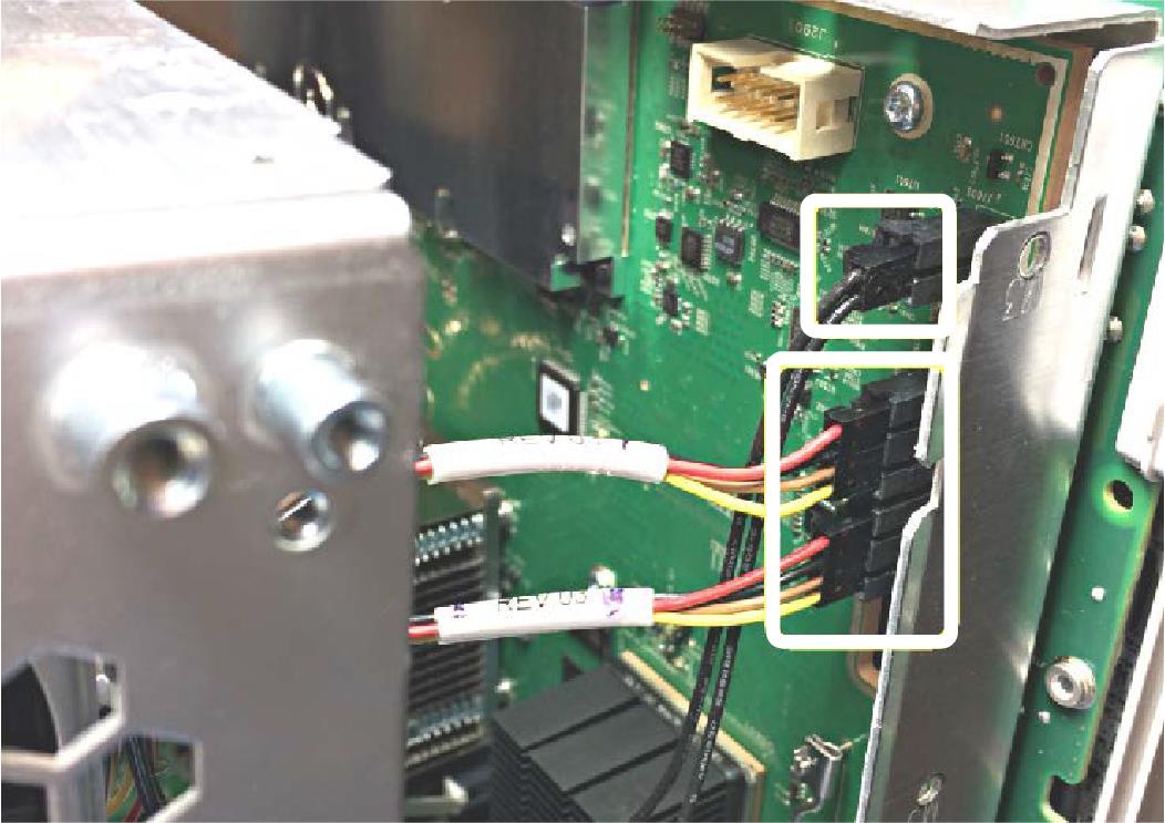 - Carefully rotate the Processor board 180° counterclockwise to get access to the cable connectors.