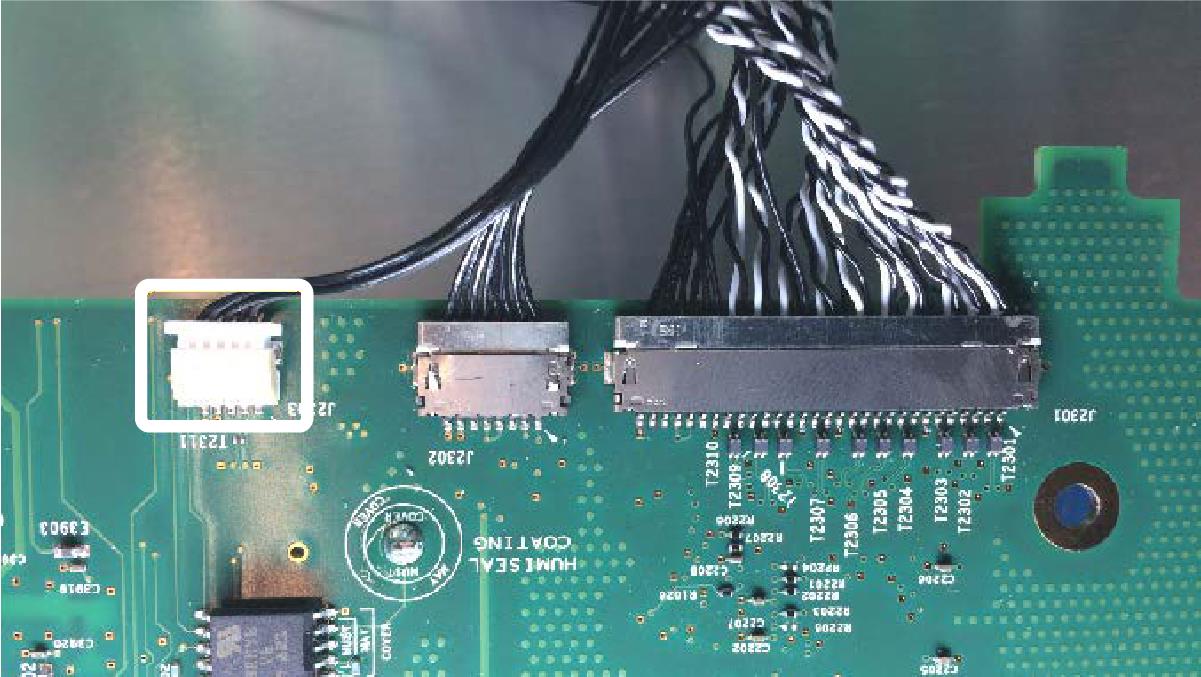 - Gently push and rock the cable connector side to side to move the wire connector out of the board connector.