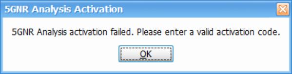 - If you receive the “5GNR Analysis activation failed. Please enter a valid activation code.” message, click OK, and then contact your local Tektronix support or Account Manager to get the correct activation code.