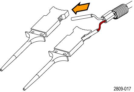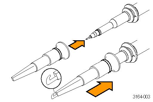 ![]() | Hook tip: Press the hook tip onto the probe tip and then clamp the hook onto the circuit. |