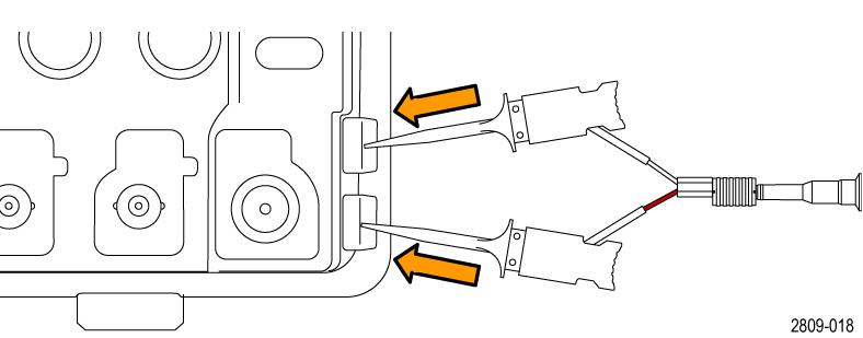 ![]() | Ground springs: To limit aberrations on high frequency signals caused by ground path inductance,bend the spring to reach nearby ground connections (<0.75 in, long; <0.25 in, short). Reorder Tektronix part numbers: |