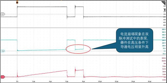传统氮化镓功率器件在高压条件下开关测试容易出现的电流崩塌现象