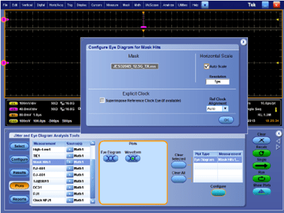 JESD204B也有成熟的测量方案,基于DPOJET一键完成包括最重要的眼图模板测试在内的所有测量项。