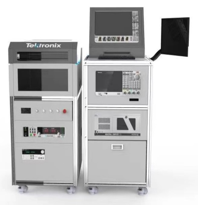 该系统由功率器件双脉冲测试驱动板,高压防护罩,芯片温控系统,泰克高分辨率示波器,光隔离探头,双脉冲信号源,高压电源和自动化测试软件组成。以机柜系统形式交付客户,可以通过上位机软件配置测试设备和测试项目,获取测试结果并生成数据报告。系统具备极高的测试灵活性,可以根据需求定制驱动电路板设计,更改栅极电阻,负载电感等关键器件参数。在保证安全的前提下,对功率器件的动态参数进行全面精准的测试评估。同时使用了泰克公司最新推出的新五系高分辨率示波器和专门用于高压查分信号测试的光隔离探头,为三代半导体器件动态特性表征带来更高带宽和更高测试精度。泰克新五系示波器可以最高支持8通道同时测量,对于半桥结构双脉冲测试电路,可以同时对上下管信号进行同步测试。光隔离探头提供了极高的共模抑制比,可以在上管测试中提供更准确的波形数据。针对系统中高速电流的测试,使用高精度电流传感器,得到更高的电流测试带宽和更准确的电流波形。同时系统还提供了动态导通电阻测试功能,可以在高速开关状态下对器件的动态导通电阻进行评估,帮助客户更准确的了解器件动态特性。