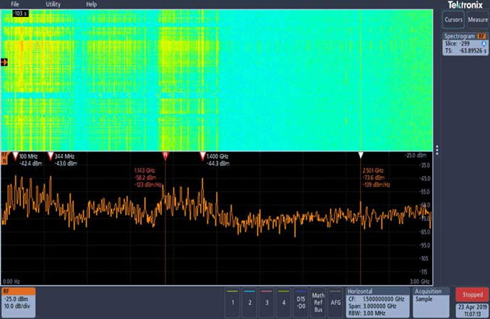 3 系列 MDO 利用其内置频谱分析仪帮助您快速发现 EMI 的来源。