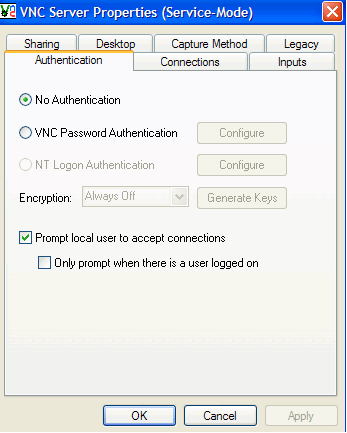 3. Configure VNC as appropriate by right-clicking on VNC icon in lower right hand corner.