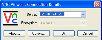 4. Run VNC viewer on the PC from Start menu or from C:\Program Files\RealVNC\VNC4\vncviewer.exe