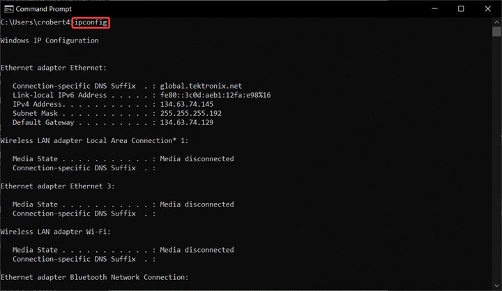 3. Type “ipconfig” and take note of